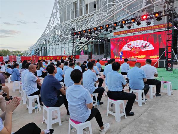 活動開始前,吳嘉龍一行聽取了項目部工作匯報,參觀了施工現(xiàn)場,并對省直工會普惠政策和“職工e惠”綜合服務平臺進行了詳細介紹。隨著下班時間的到來,項目部職工陸續(xù)來到彩旗飄揚的活動現(xiàn)場,由不同領域勞模組成的六支服務隊前漸漸圍滿了人群,有的修剪頭發(fā),有的為手機貼膜,有的接受專家的診療、領取免費的藥物,有的聽取法律條文及最新的技術信息等方面的介紹……下午6點30分,在一曲優(yōu)美的開場舞蹈《我的祖國》中,“送文化志愿服務”拉開了序幕。舞臺上,歌曲、反串、變臉、相聲、雜技、舞蹈,一個個精彩節(jié)目輪番上陣,為職工們送上了一場視聽盛宴。在互動環(huán)節(jié),現(xiàn)場職工熱情高漲、積極參與,掌聲、喝彩聲此起彼伏,歡聲笑語久久回蕩。昂揚向上的文藝節(jié)目,展現(xiàn)了勞動者的精氣神,給予了職工極大的鼓舞。